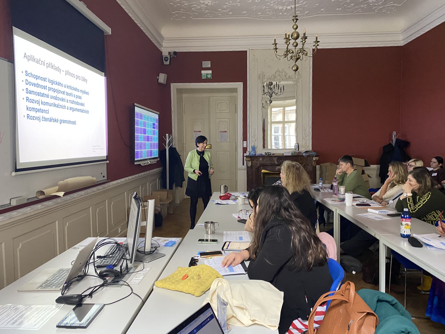 Na jubilejním 30. ročníku konference Dva dny s didaktikou matematiky, kterou pořádala Pedagogická fakulta Univerzity Karlovy ve spolupráci se Společností učitelů matematiky JČMF ve dnech 12.–13. února 2026 v Praze, představily Petra Vondráková, Iva Skybová a Marie Kubíčková novinky z portálu Math4U v rámci své pracovní dílny s názvem "Hry na míru – novinka na portálu Math4U".