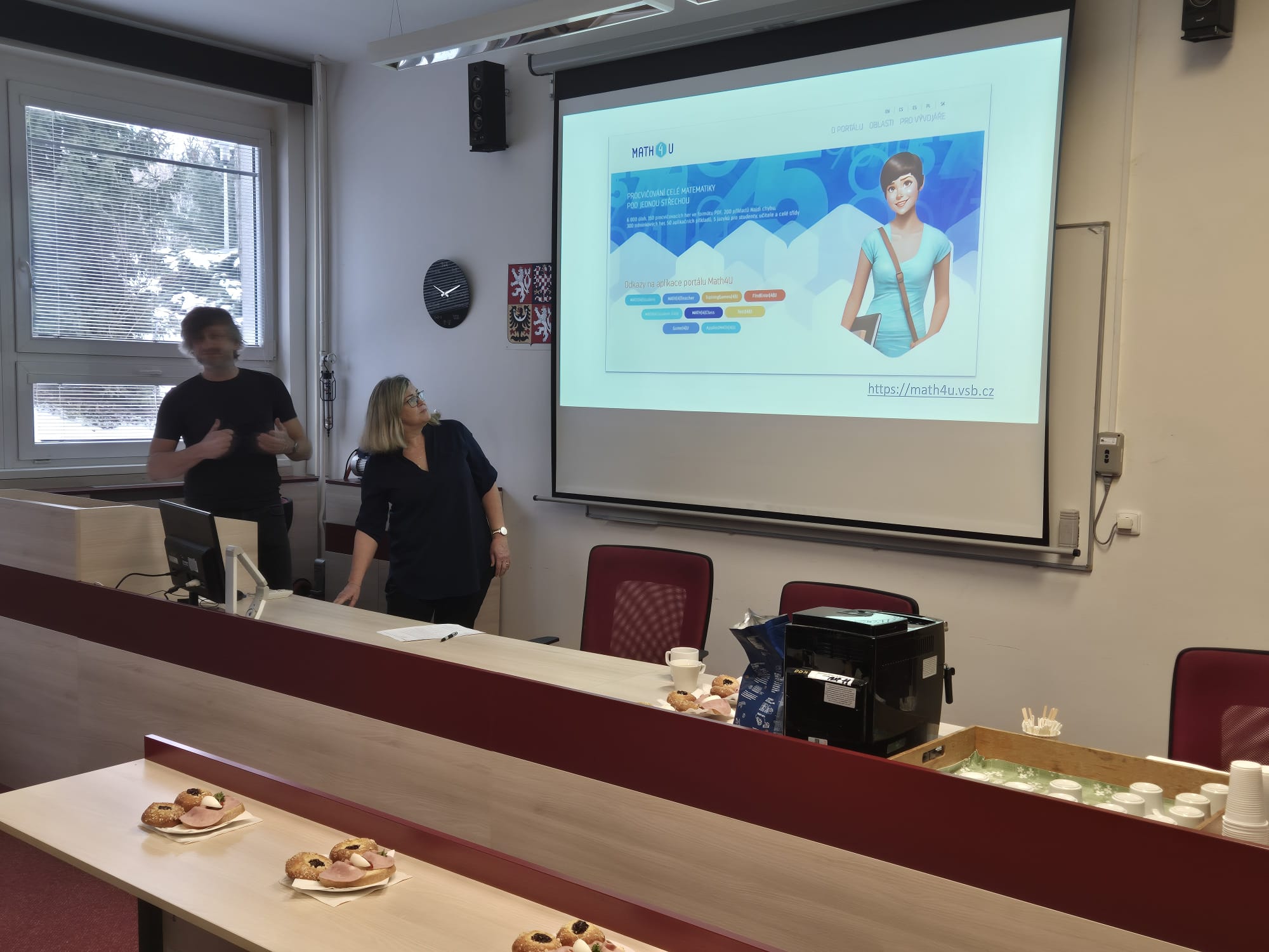 Ve čtvrtek 15. ledna 2026 se na Gymnáziu Hladnov v Ostravě setkali ředitelé gymnázií Moravskoslezského kraje. Jejich hostitelem byl Mgr. Daniel Kašička, ředitel zmíněné školy a současně člen Rady Asociace ředitelů gymnázií České republiky. V rámci tohoto setkání byl místními učiteli matematiky Mgr. Petrem Otipkou, Ph.D. a Mgr. Ivou Skybovou představen projekt Učím(e) s Math4U.