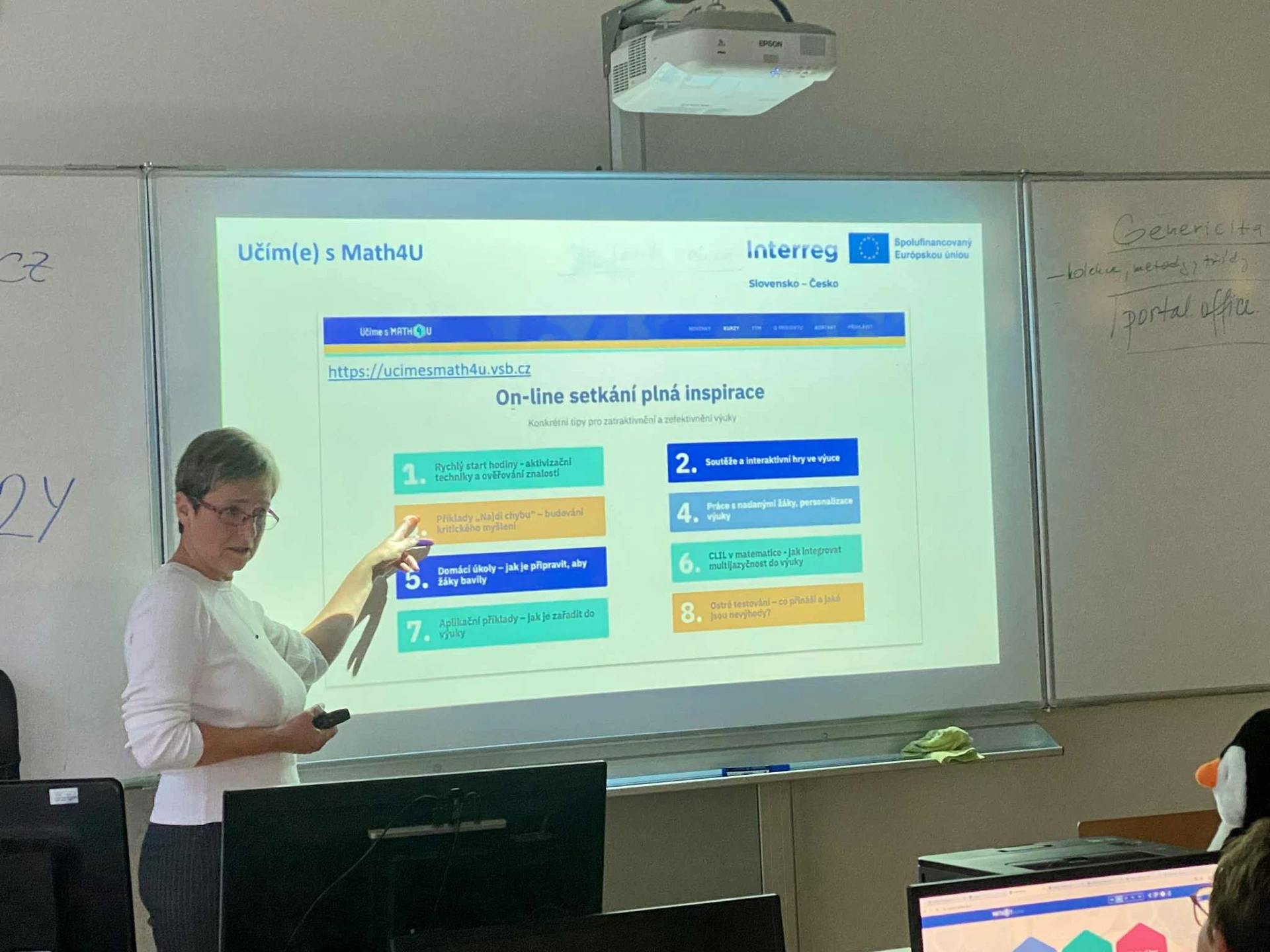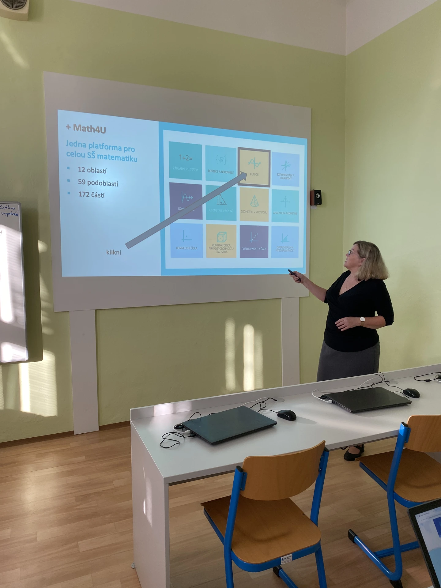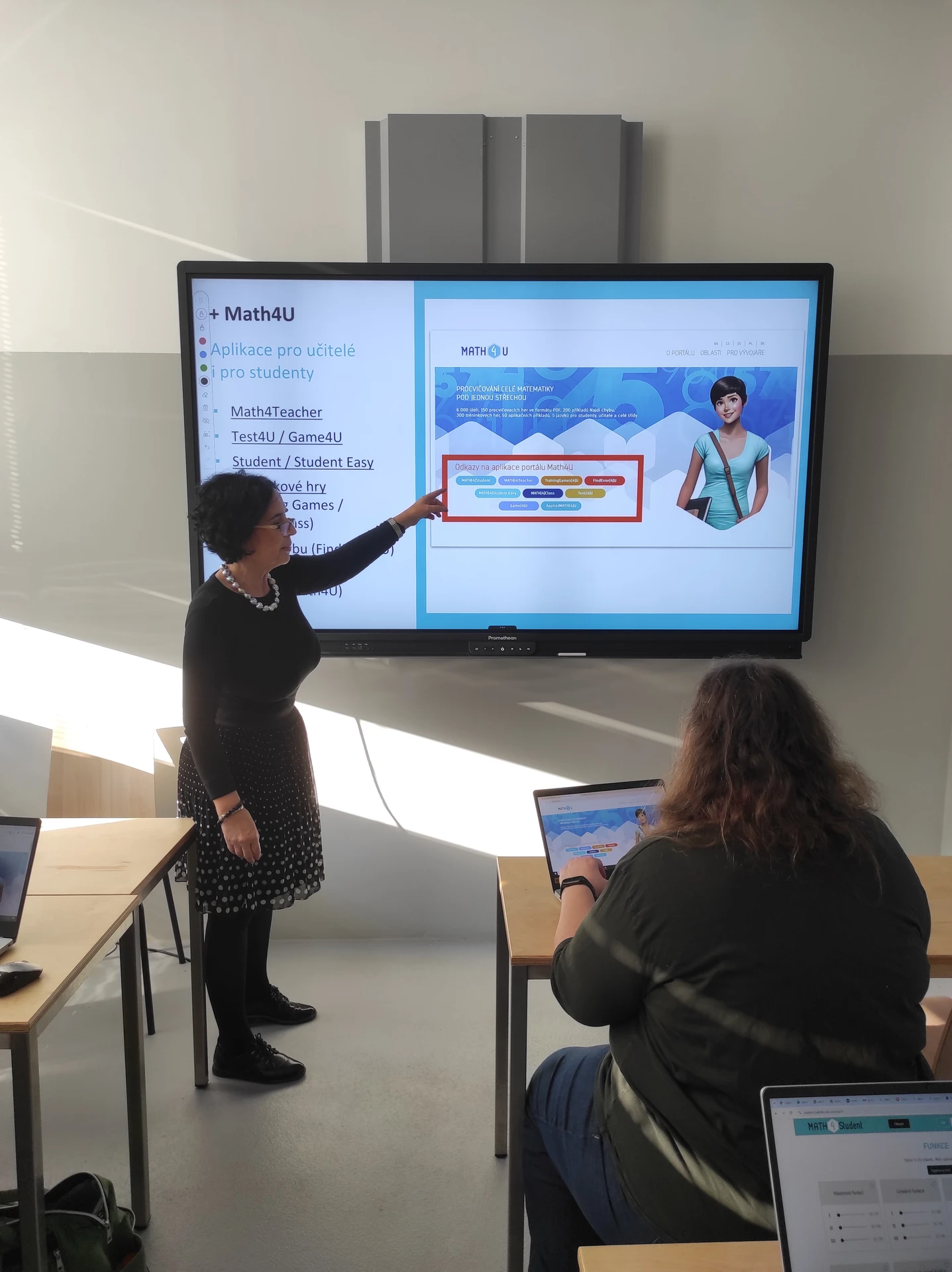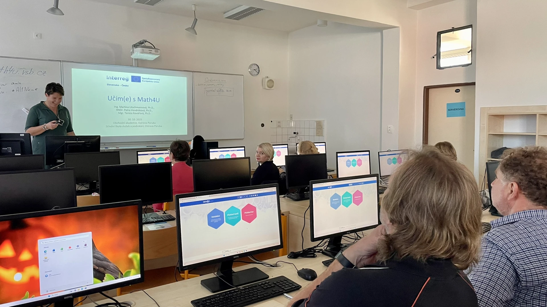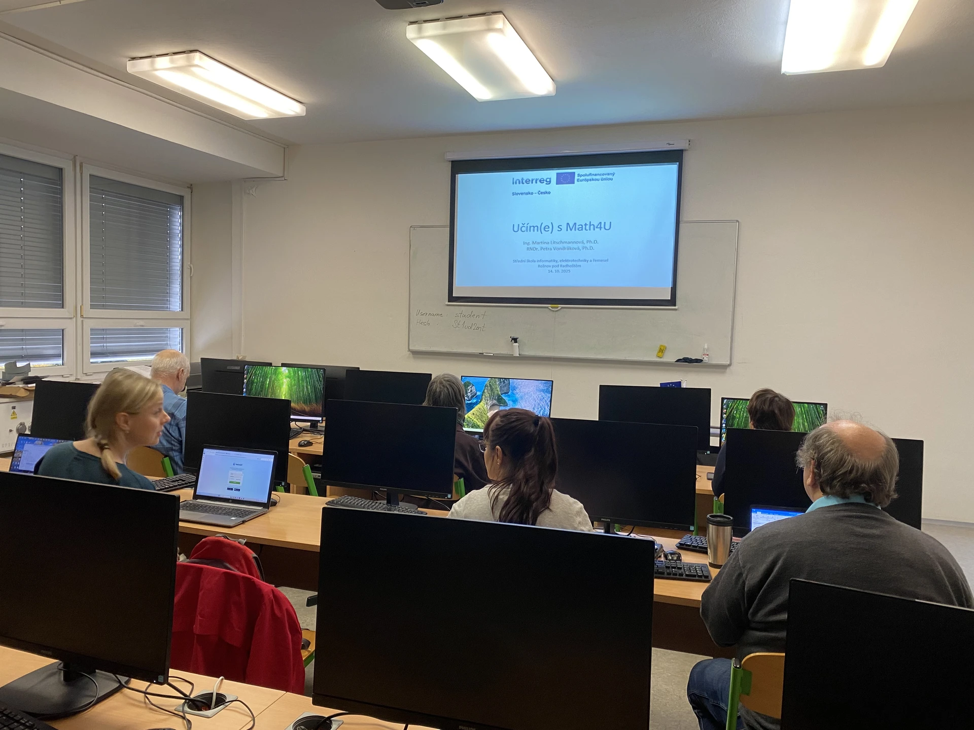 První prezenční workshop v Česku proběhl 14. října se na Střední škole informatiky, elektrotechniky a řemesel v Rožnově pod Radhoštěm. Učitelé se seznámili s funkcemi portálu Math4U a moderními metodami výuky matematiky, které usnadňují práci s didaktickými materiály a podporují interaktivitu.
