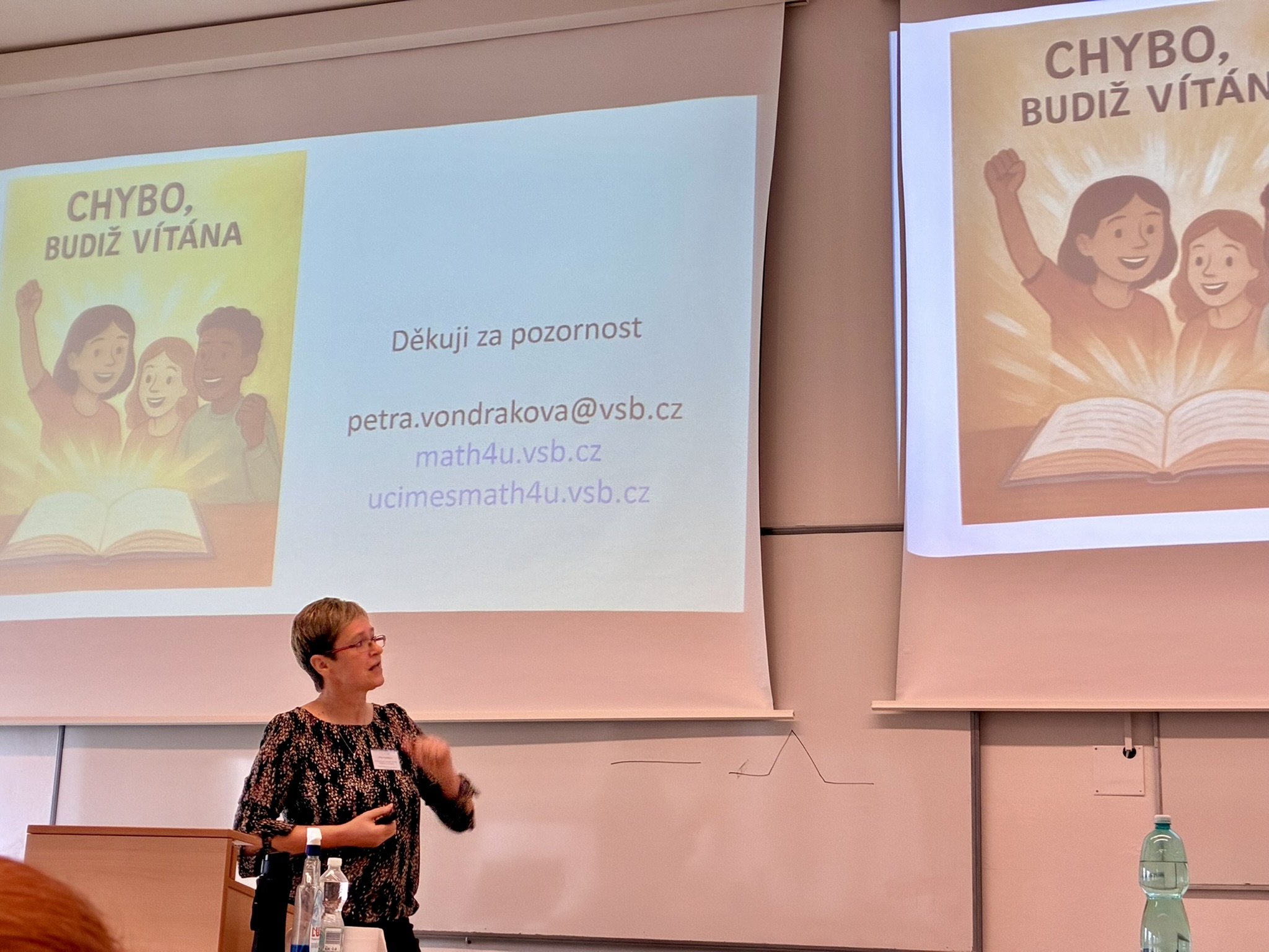 Ve dnech 13.–15. listopadu 2025 se v Českých Budějovicích uskutečnila tradiční konference Užití počítačů ve výuce matematiky. Na akci vystoupila také Petra Vondráková s příspěvkem Příklady typu „Najdi chybu“ ve středoškolské matematice, v němž se zaměřila na využití těchto úloh při rozvoji kritického myšlení žáků. Účastníkům zároveň představila projekt Učím(e) s Math4U a jeho možnosti pro výuku matematiky na středních školách.